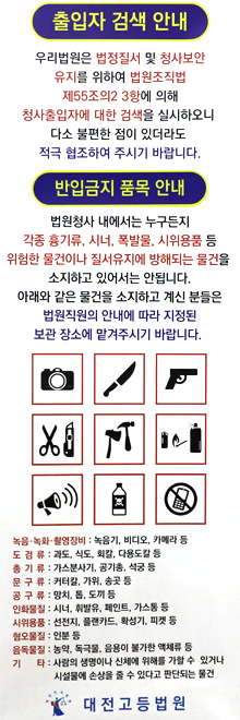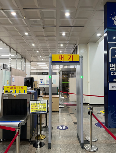 (ÀÓ»êºÎ ¶Ç´Â Àΰø½ÉÀå¹Úµ¿±â¸¦ ºÎÂøÇÏ°í °è½Å °æ¿ì¿Í °°ÀÌ Æ¯º°ÇÑ »çÁ¤ÀÌ ÀÖ´Â ¹æ¹®°´²²¼´Â º¸¾È°Ë»ö Àü¿¡ ¹ý¿øº¸¾È°ü¸®´ë¿ø¿¡°Ô ¸»¾¸ÇØ Áֽñ⠹ٶø´Ï´Ù) - °¡¹æÀ̳ª ¹è³¶À» ¼ÒÁöÇÏ°í °è½Å °æ¿ì¿¡´Â X-Ray ¼ÒÇüȹ°Åõ½Ã±â¸¦ ÀÌ¿ëÇÏ¿© ³»¿ë¹° È®ÀÎÀÌ ÀÌ·ç¾îÁý´Ï´Ù.